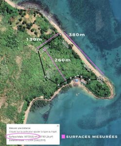 large scale image of the entire nosy faly property with both beaches, bay and houses