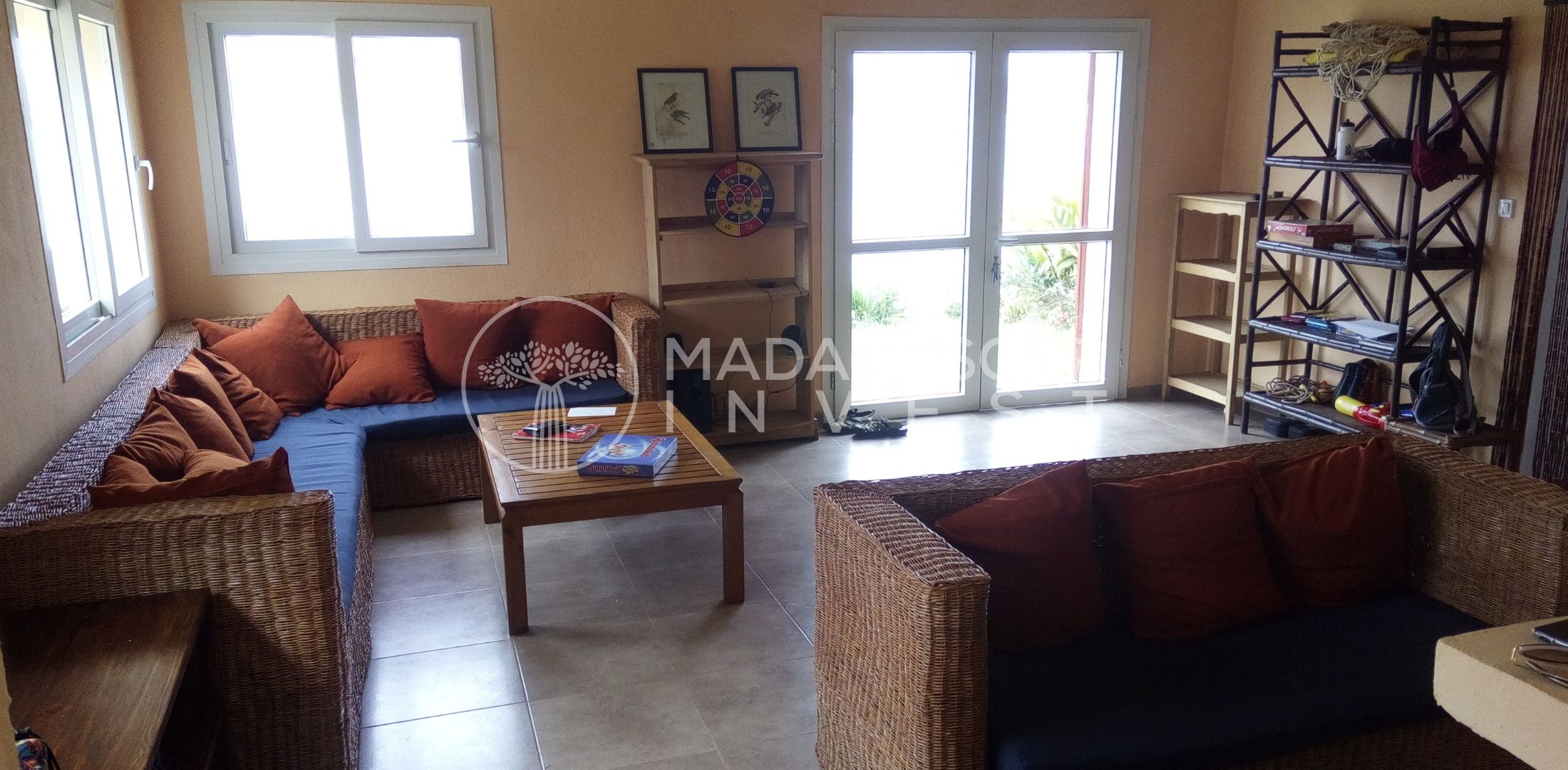 Cette villa exceptionnelle de 200 m² en bord de lac est située sur un terrain de 3 700 m² couvert de pins, directement sur les rives du lac Mantasoa, offrant une vue panoramique à couper le souffle à 180° sur l'eau dans un cadre calme et privé.